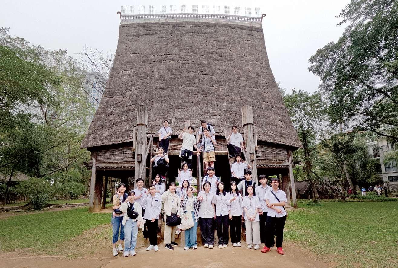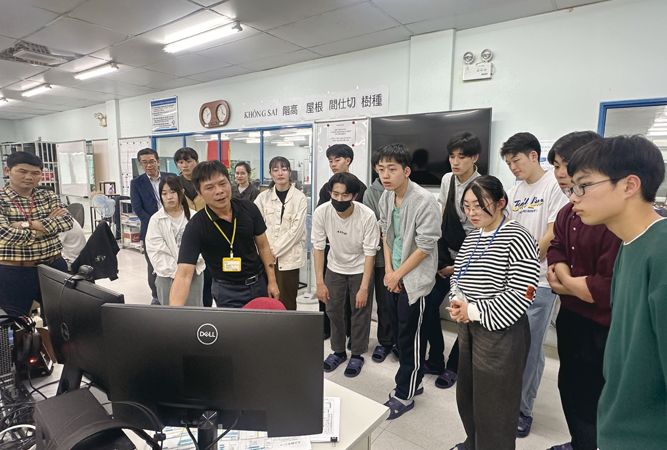 岐阜県立大垣東高等学校と当社は、2024年6月「ベトナム短期研修事業に係る支援等に関する連携協定」を交わし、ベトナムと日本の架け橋として、大垣東高校のグローバル人材育成支援に携わっています。2024年3月に社員と先生方による現地調査、7月に事前研修を行って参加者を募り、2025年3月に12名の学生がベトナム研修旅行に参加しました。私たちは、多文化共生社会に向けて、若い世代が国境を越えた交流を経験し、多様な文化や価値観に触れることが、将来の大きな財産になると考えています。今回の研修が、学生の皆さんにとって新たな発見や学びにつながり、世界に目を向けるきっかけになると信じています。2025年4月30日、大垣東高校にて「ベトナム研修報告会」が全校生徒に向けて開催され、研修に参加した12名の生徒がそれぞれ作成した資料を用いてプレゼンを行いました。6月には昨年同様に事前研修を行い参加者を募り、2026年3月にベトナム研修を予定しています。