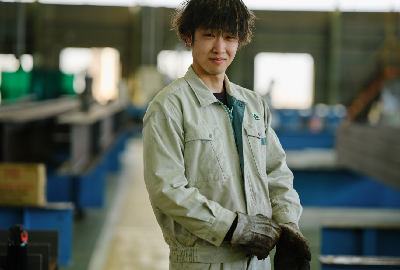 私自身は金属加工の仕事に携わっており、主に半自動溶接を行っています。図面を確認しながら製品を組み立て、その後、溶接を行うのですが、仕上がりの外観や内部の溶け込みが非常に重要です。まっすぐで美しい見た目、そしてしっかりと接合されているかどうかを確認しながら、丁寧に、集中して作業に取り組んでいます。仕上がりが良く、超音波検査で問題なく通ったときには、大きな達成感を感じます。